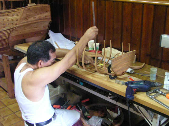 依古法所製的外板,古代並沒有加工木材的機器,一般都使用斧頭來處理巨大的木材,所以船的外板都是用整支原木削去三分之一後,把整支原木裝在船的外側上做為外板,這樣整體的結構強硬,且保留了木材的原本彈性,而且不需要複雜的加工過程,作者在學徒時代曾製作過此型漁船,因而可將此種在台灣可謂以失傳的技術再重現。