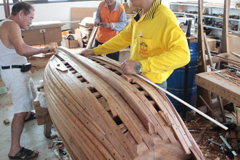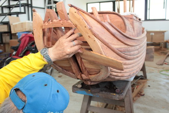 自由中國號的船身是由半圓木所製成,直接利用整棵樹木剖成二半製作,因此是半圓形的。