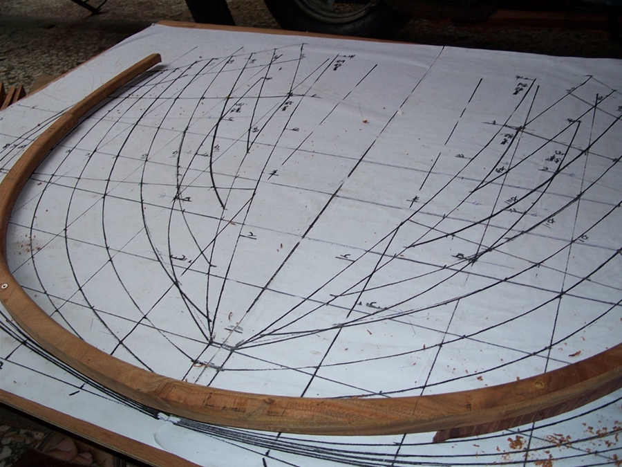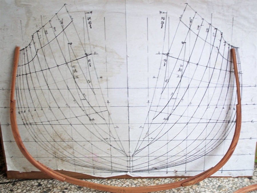採用傳統木造船工具,如竹筆,墨斗